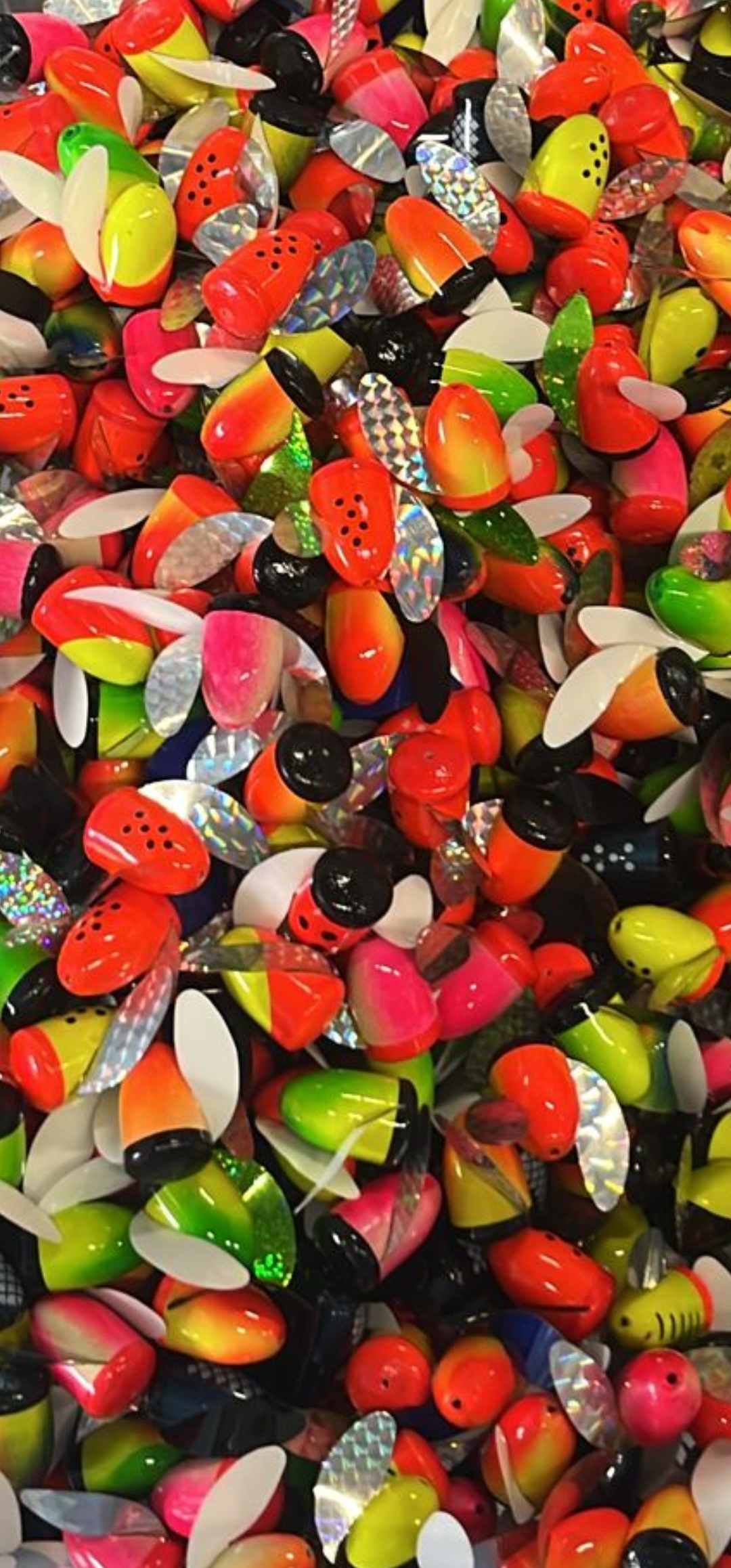 Es ist kein Geheimnis, dass Druckwellen das Seitenlinien Organ der Räuber anspricht. Hier erhaltet Ihr 5 Auftriebskörper farblich gemischt für den Bau eures Natur Köder System. Sie haben ein Länge von 25 mm und sind in guter Qualität.