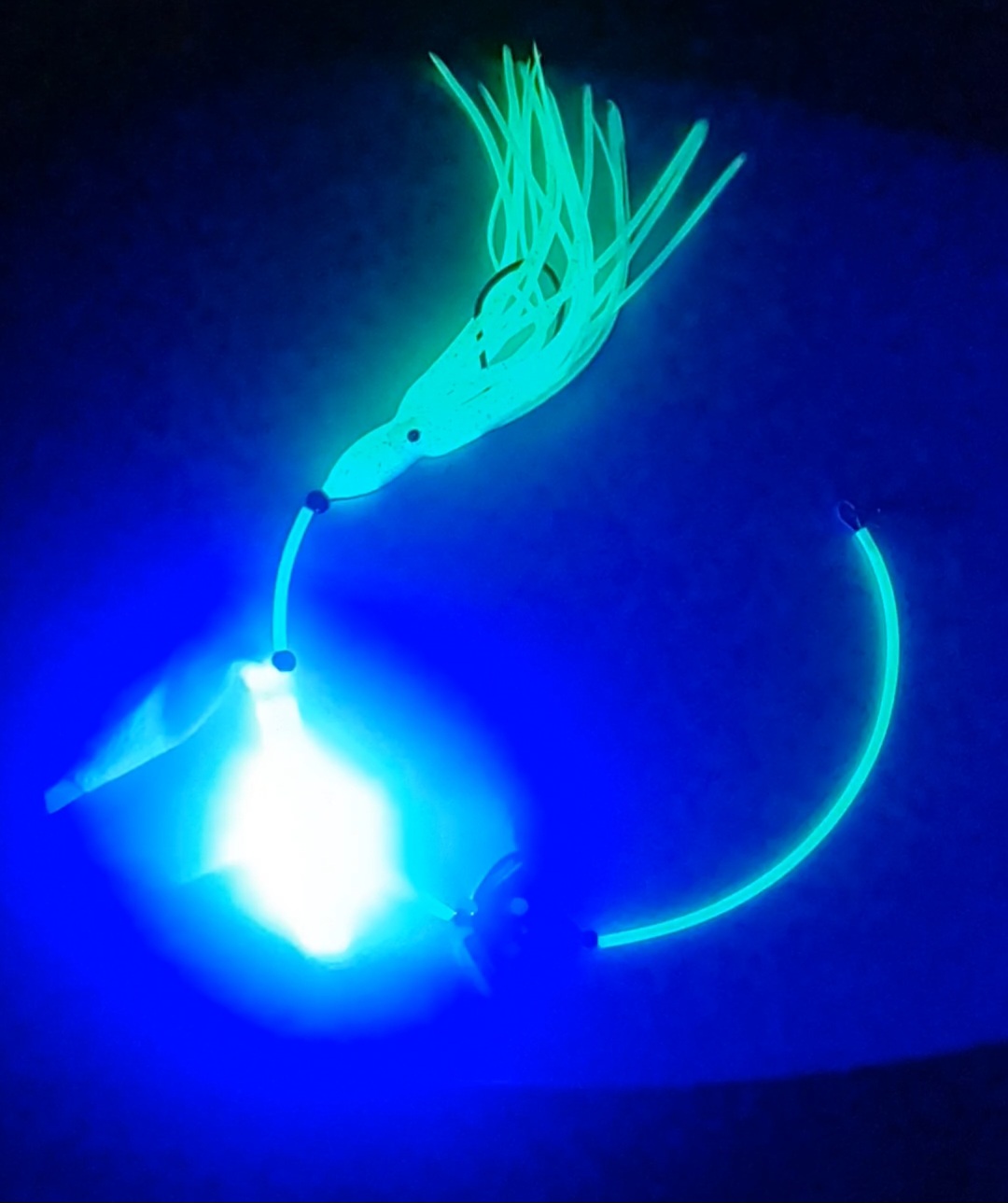 - Oktopus blau, Fluo, UV mit Glitzer und riten Streifen