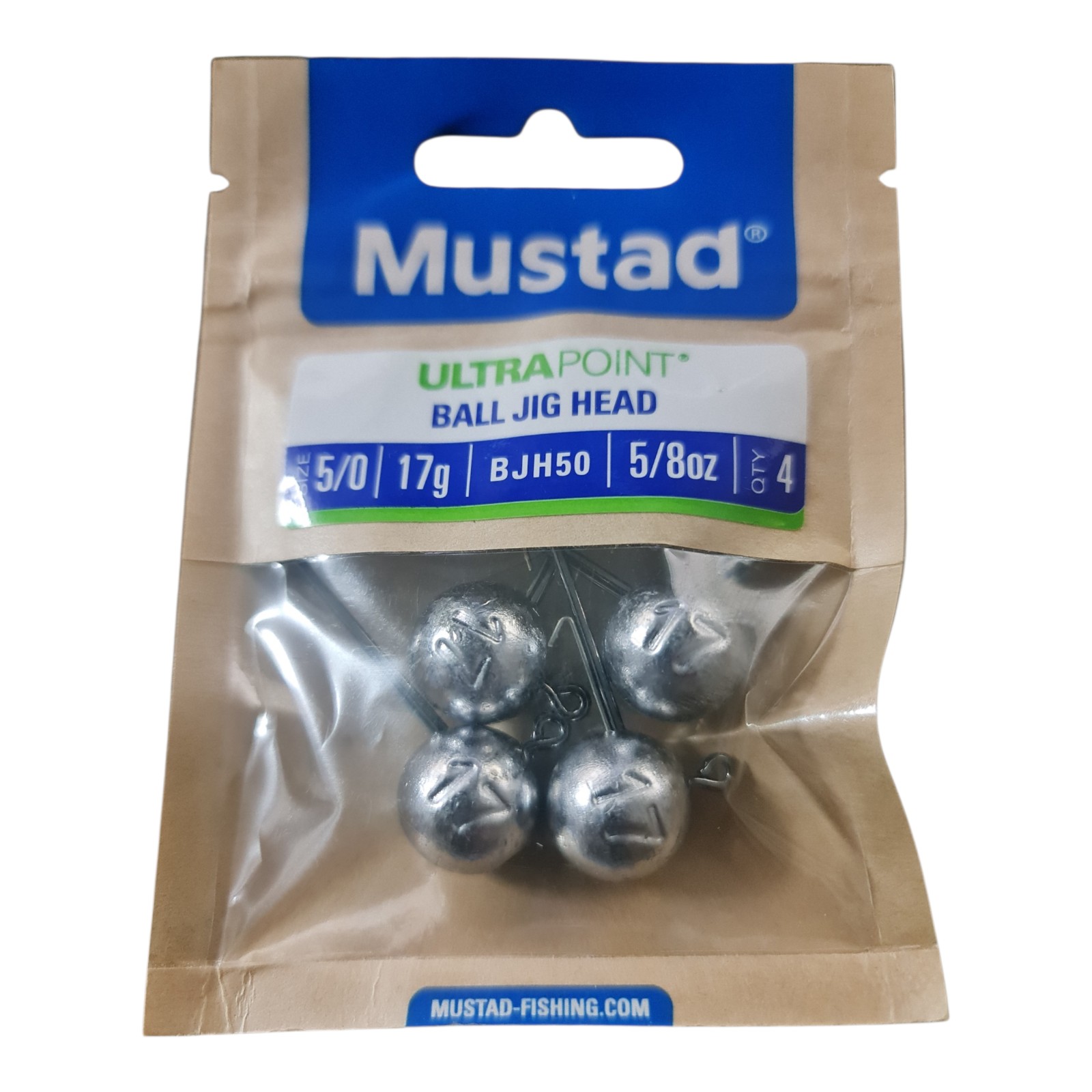Mustad Ball Jig Head 5/0, 17 Gramm, 4 Stück.