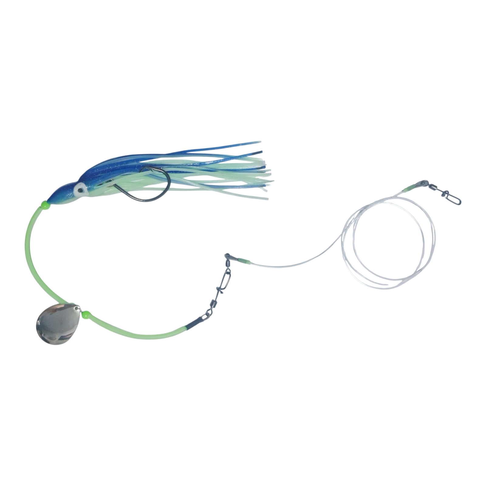 Die Laude-Fishing Naturköder Vorfachverlängerung wurde mit Premium Komponenten gebaut und ermöglicht, zum Beispiel, aus einem 50 cm Vorfach ein 1,50 Vorfach zu machen. Dazu wird der Wirbel einfach in den Karabiner/Jig Snap vom Laude-Fishing Naturköder System eingehängt und der JIg Snap ermöglicht das schnelle und einfache eindrehen in der Öse eines Pilker, Stab Blei oder einem Nierenblei.
