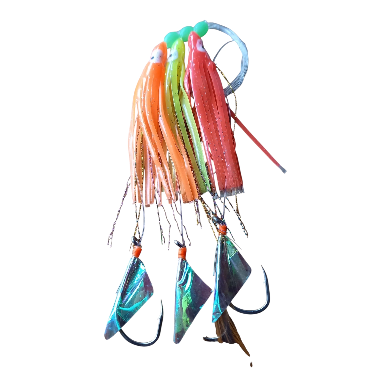 Das Octopus-RED-Orange-Yellow-Meeresvorfach von Shakespeare ist ausgestattet mit drei Haken in Größe 3/0. Die Seitenarme werden jeweils mit einem Silikonoktopus und Fluo-Lockperlen ausgestattet. Der Haken läuft hier nach und ist mit einer Holo-Folie dekoriert. Gleichzeitig wurde noch eine Feder als zusätzliches Lockmittel verbaut. Hergestellt unter strenger Kontrolle, um die Qualität zu gewährleisten. Alle Knoten sind handgebunden und werden zu 100 % kontrolliert.